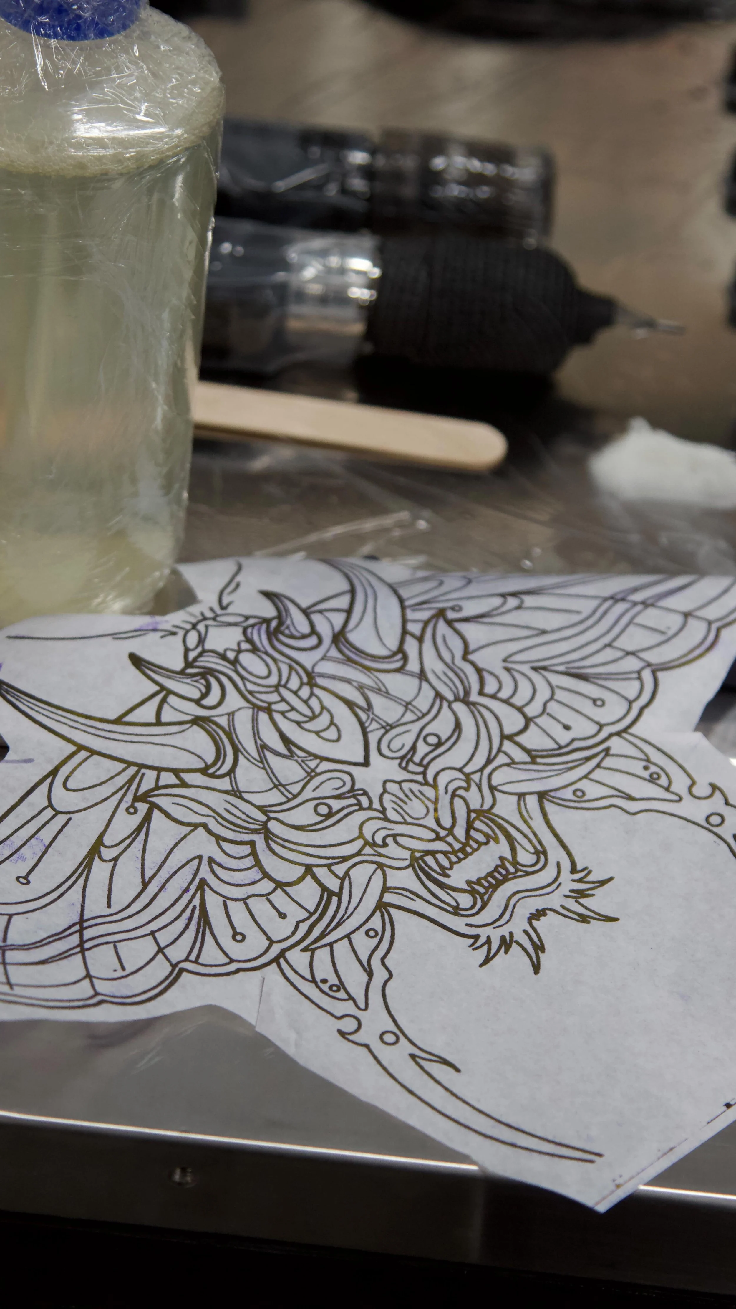 Our studio is fully licensed with each artist also holding their own personal licenses with the Local Environmental Health Department. We adhere to an extremely strict hygiene regime throughout the whole studio. After each client has been tattooed, all machinery, work stations and chairs are thoroughly cleaned or disposed of. The same ideals are in place when setting up for a new customer, the rules and regulations of hygiene we have set are of the highest standard.